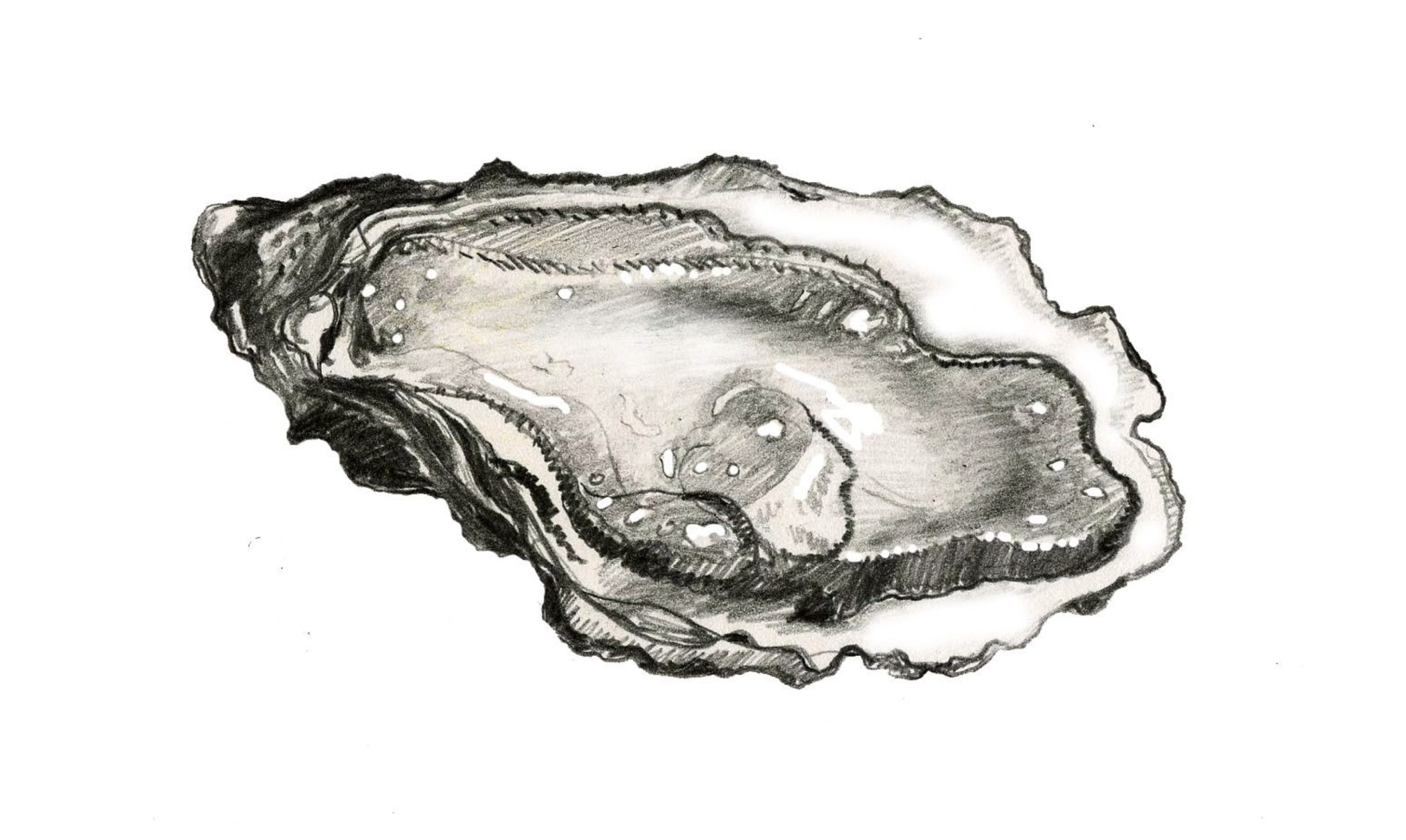 Her pickiness paid off as her search came to an end, and oh my did these oysters intrigue! Their intense edges and visceral carvings gave character, and she could already sense the luminosity gleaming from the soft inner lining of their shells. She admired how they all fit together, yet held their own space on the reef. With little to no hesitation, she nestled her nose. Now being with a bed made her realize how important it was to hold autonomy for her own shell: protection, identity, movement, mortality. But, no matter how hard she tried to be her own conductor of calcification, the inevitable protrusion and deflation of her shell was often influenced by her mollusk mates. With how many rules there were being an oyster and part of a big oyster bed, it was almost forgotten that the language of the tides was still a lesson to be learned. All the creatures of the sea had the duty of learning to live with the waves.