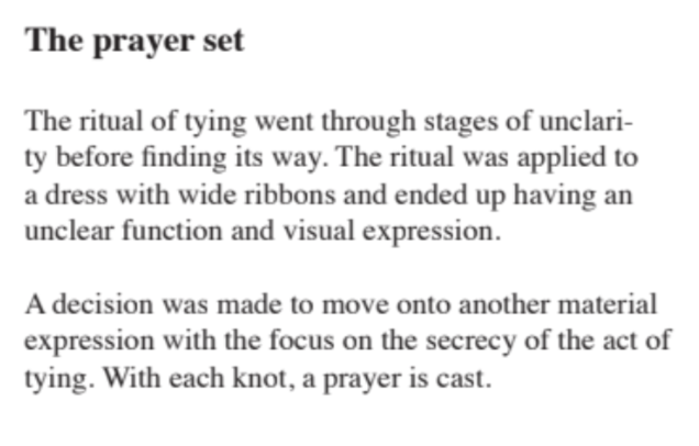 These rituals may act as a toolkit for practicing creativity consciously and support sustainable ways of working. A ritualistic approach to the design process is studied with the intention of cultivating deepened clarity and the ability to act with alignment during designing.”